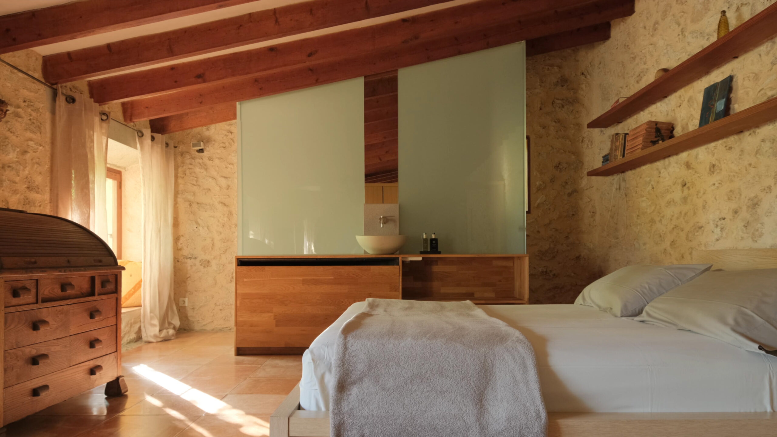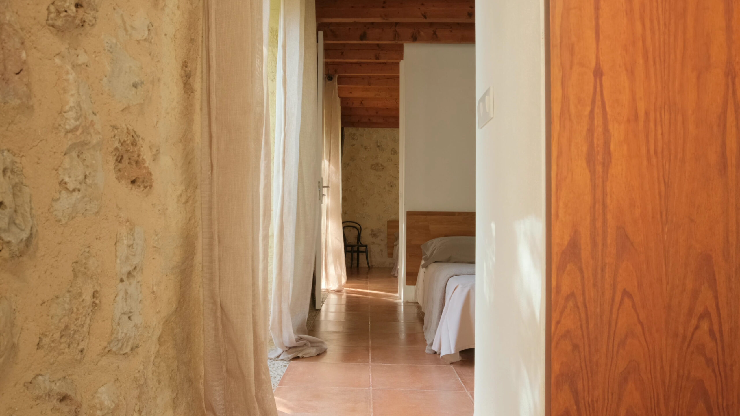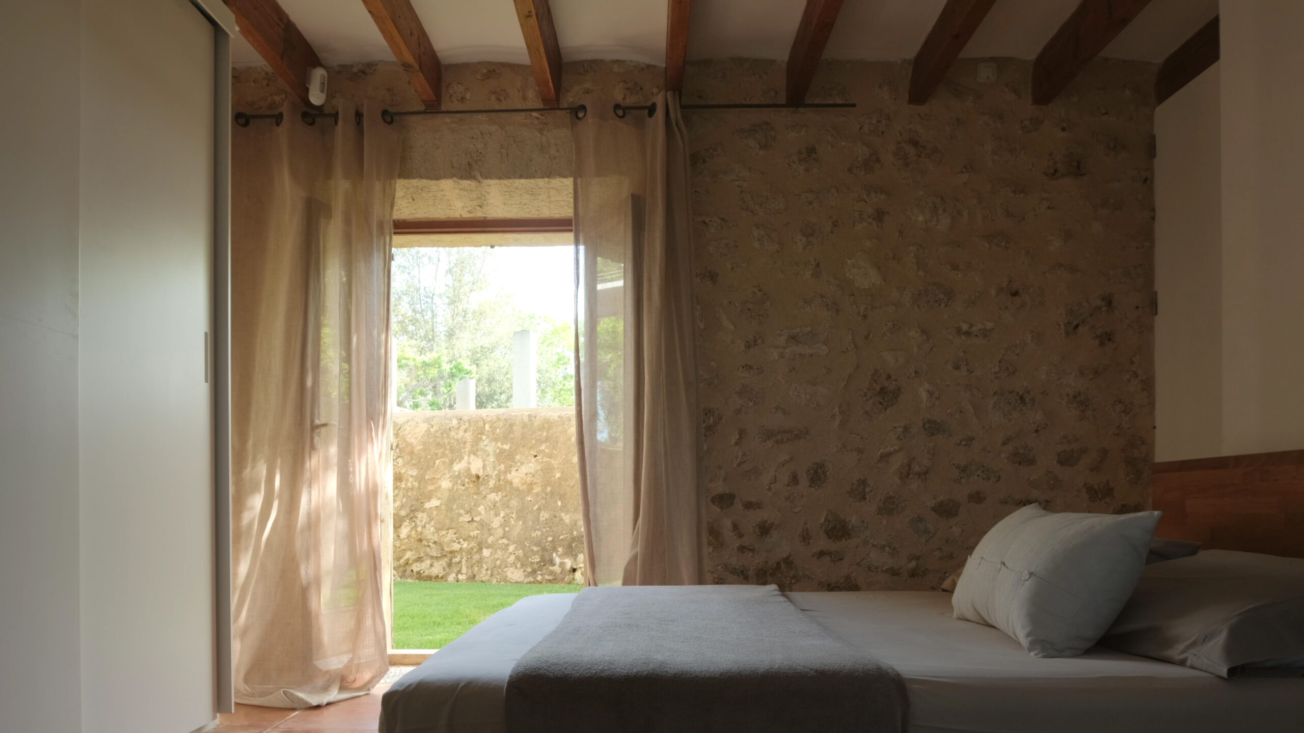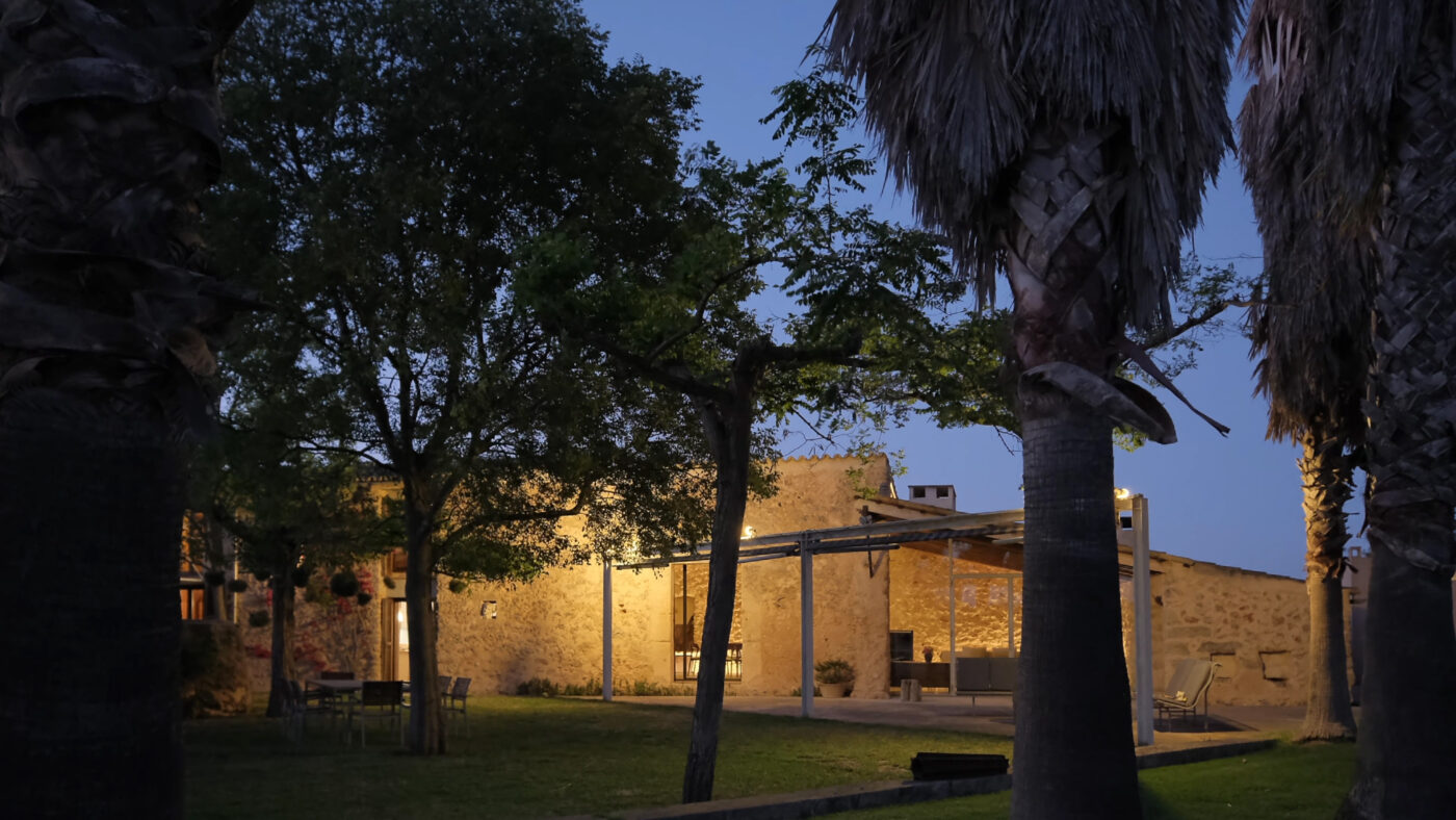 En el Pla, a los pies de Sencelles y junto a un torrente, sucesivas generaciones conformaron estas tierras en el huerto que fue. De la tierra extrajeron los materiales con que construir el pozo, la noria y el estanque. Ingenios, tenacidad y mucho trabajo fueron necesarios para regar la misma tierra que les alimentó y cobijó. Establos, pajar, caseta, porche… construcciones utilitarias, complementándose sabiamente transcendieron en lugar, de cualidades intemporales, escenario amable de vidas.
